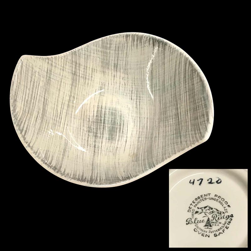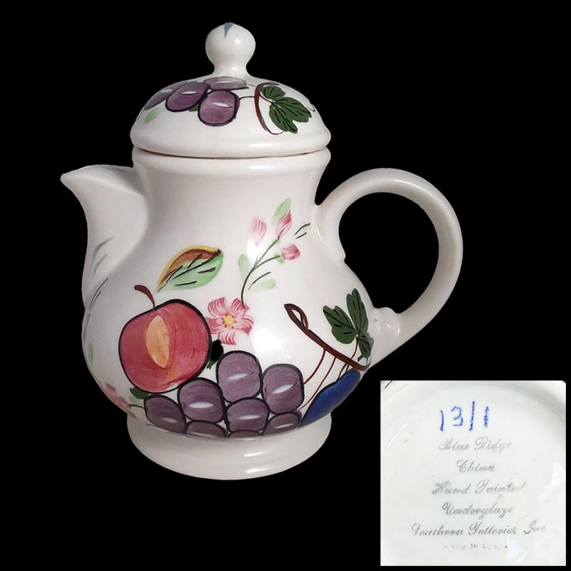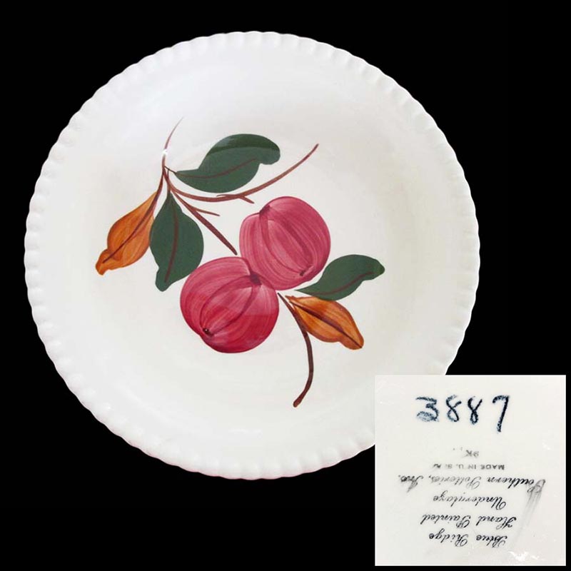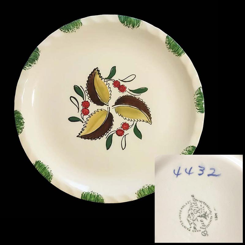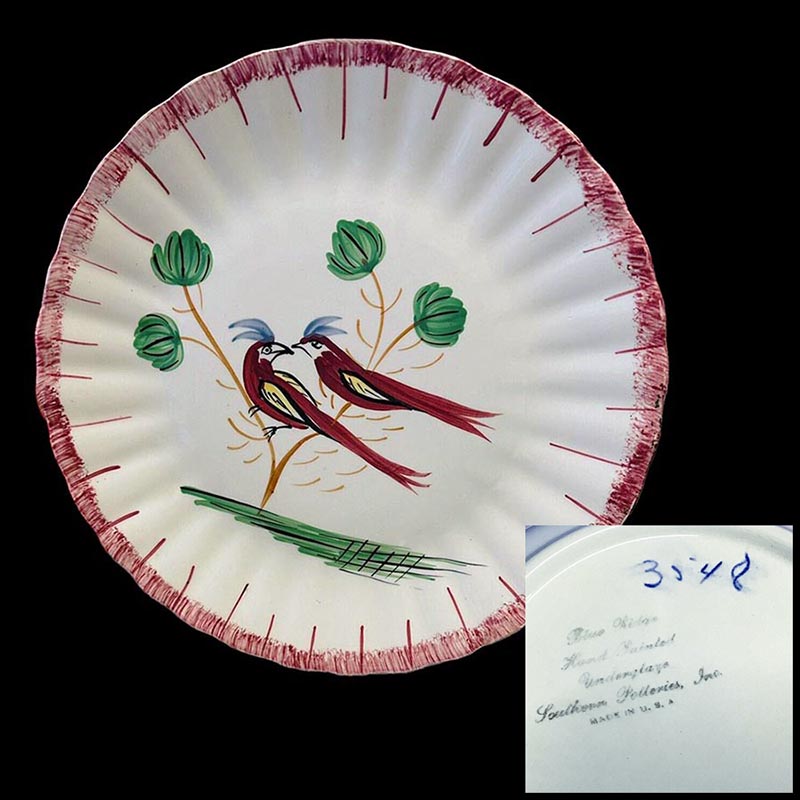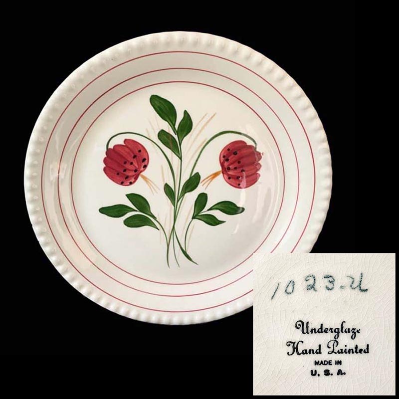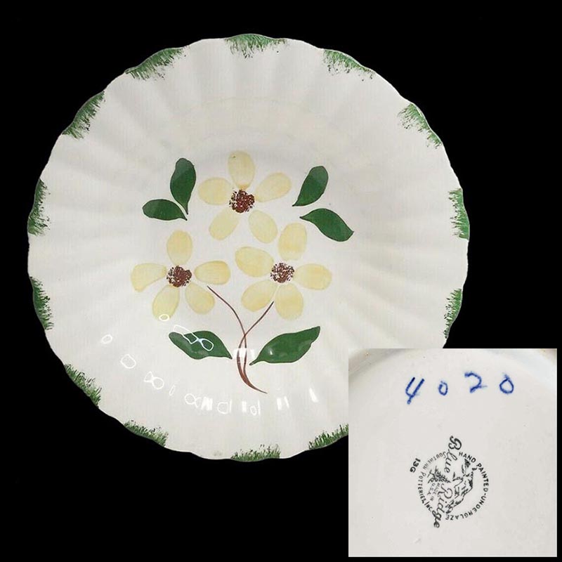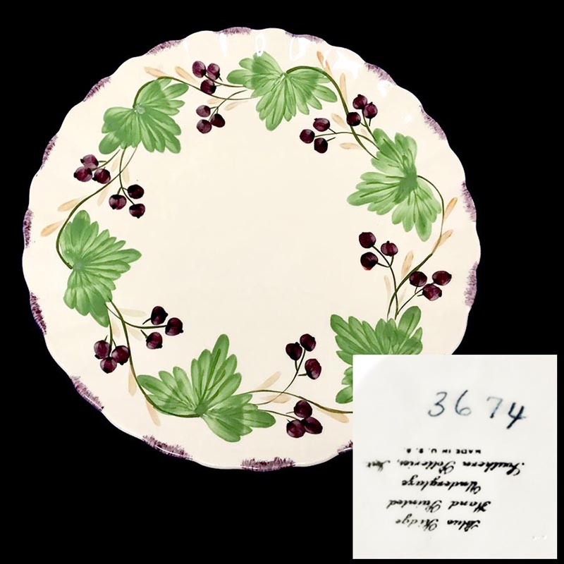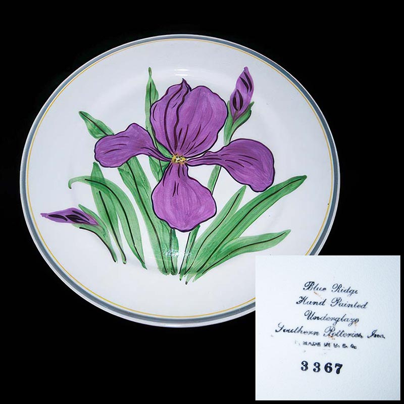 In general, these pattern names are based on the names given in John and Frances Ruffin's three books, Blue Ridge China Today, Blue Ridge China Traditions, and Blue Ridge China Treasures.My intention is to add as many pictures as possible to aid those who don't have access to any of the various Blue Ridge books, but I'll need some help to do it. If you have any pieces of a pattern for which a picture isn't shown, you can help others by sending a picture (a dinner plate works best). Also, if you have a pattern (and number) that is not shown on this page, that information would be greatly appreciated as well.